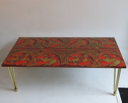 Italian Red Lacquered Linen And Gold Coffee Table 1950s For Sale