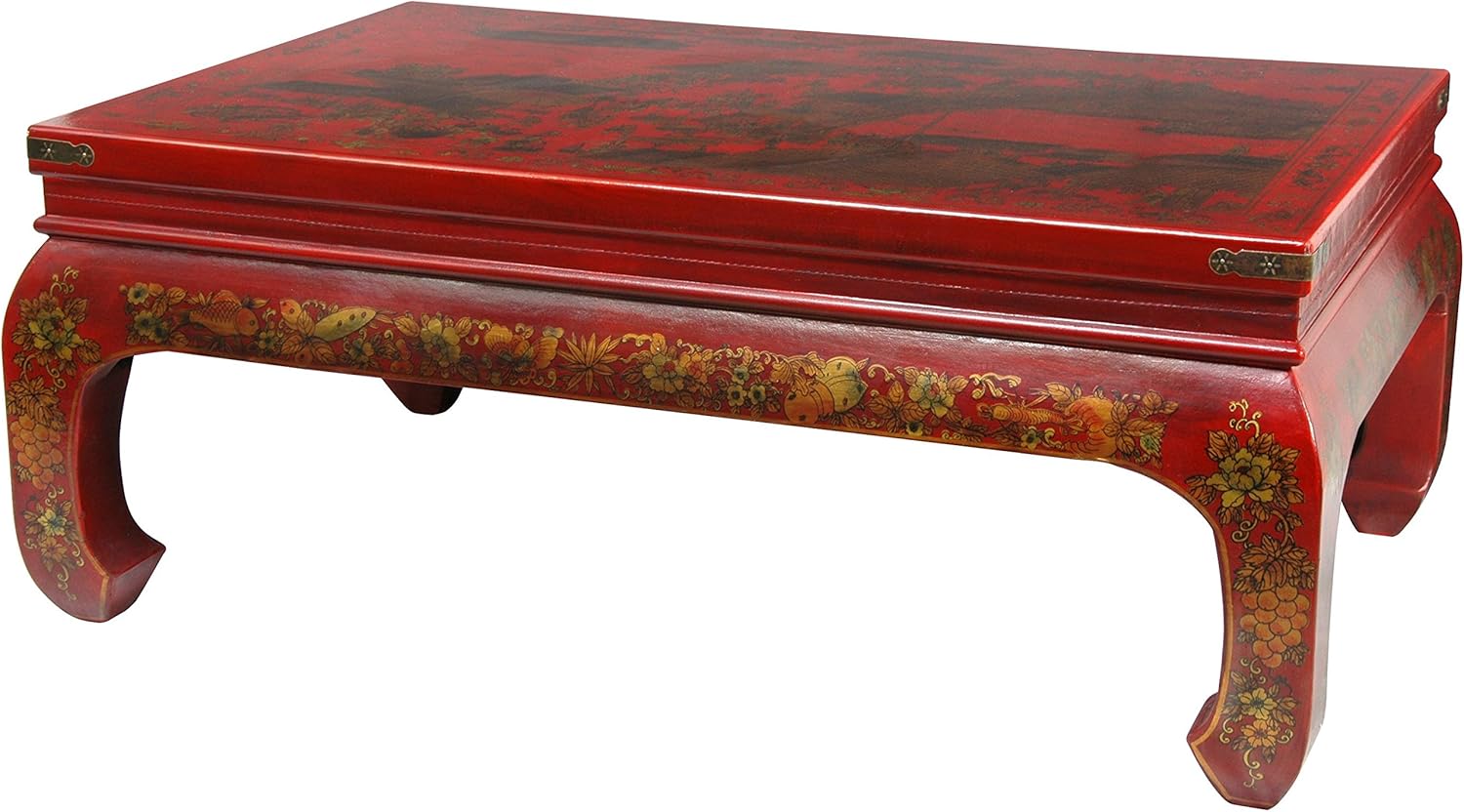 Oriental Furniture Red Lacquer Peaceful Village Coffee Table
