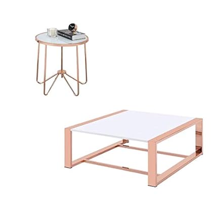 Acme Furniture Canty White Rose Gold Coffee Table The Classy Home