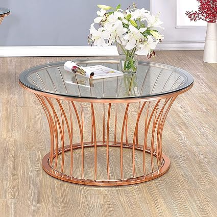 Lazy River Furniture Celise Rose Gold Round Coffee Table W Glass Top