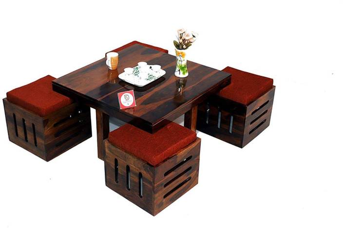 Allie Wood Sheesham Wood Center Coffee Table With 4 Stool For
