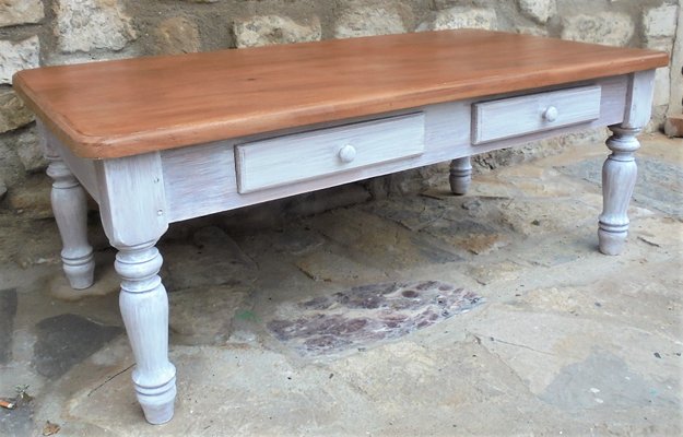 Vintage White Coffee Table With 2 Drawers For Sale At Pamono