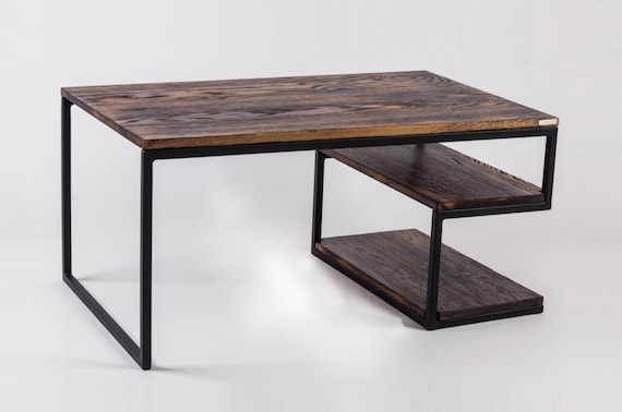 Modern Industrial Zigzag Coffee Table Metal And Wood Etsy