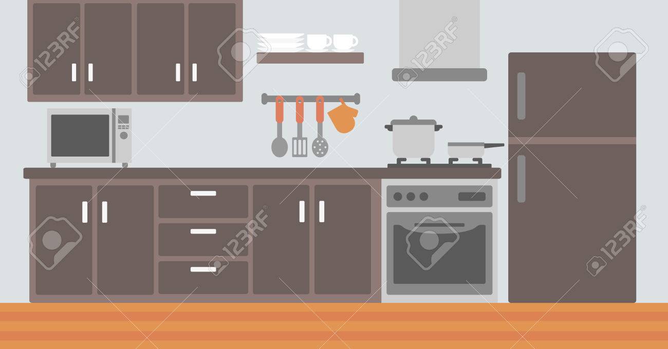 Background Of Kitchen With Appliances Vector Flat Design