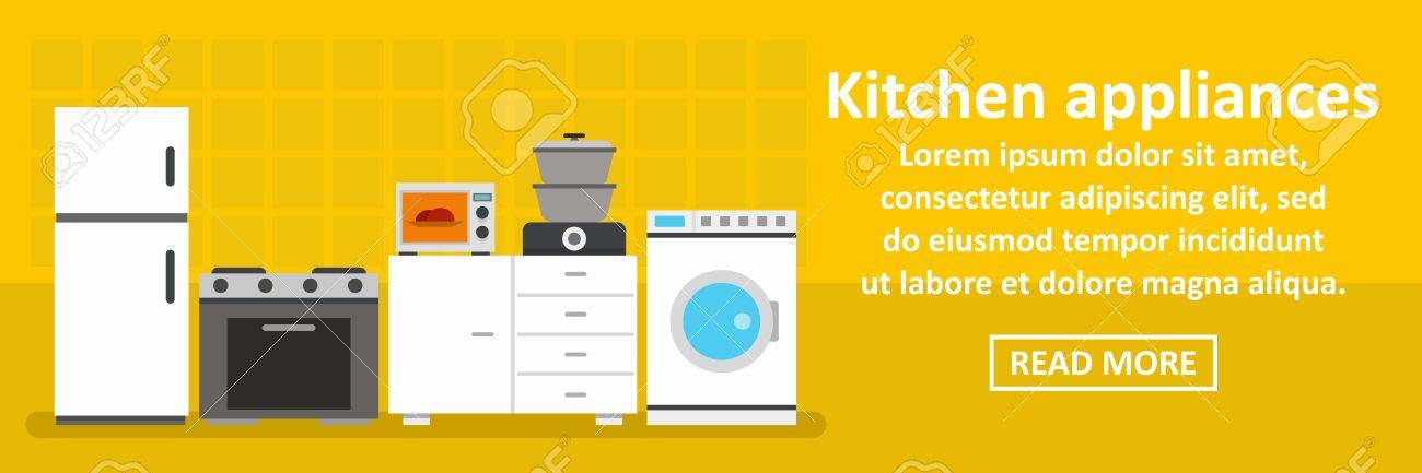 Kitchen Appliances Banner Horizontal Concept Flat Illustration