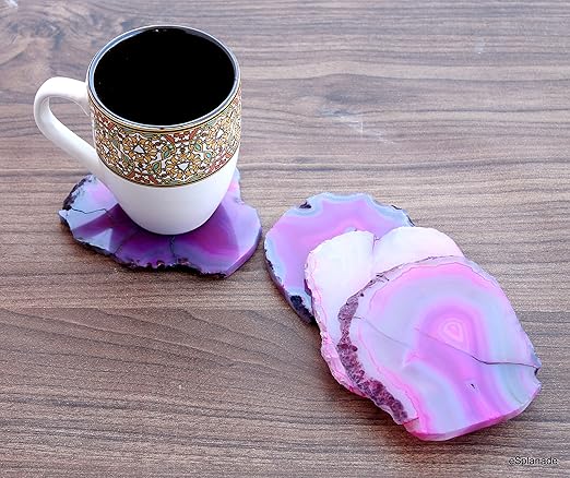Puple Agate Slice Coasters Set Of Four Crystal Quartz Coffee