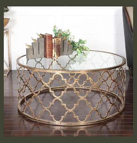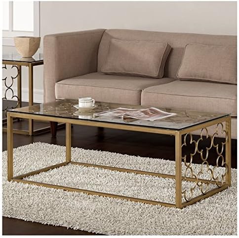 Amazon Com Quatrefoil Goldtone Metal And Glass Coffee Table