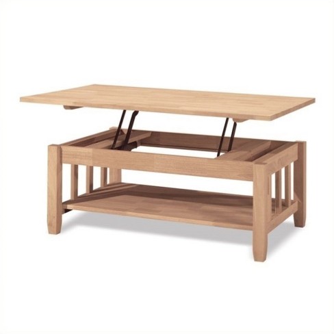 Wood Unfinished Mission Coffee Table With Lift Top In Brown