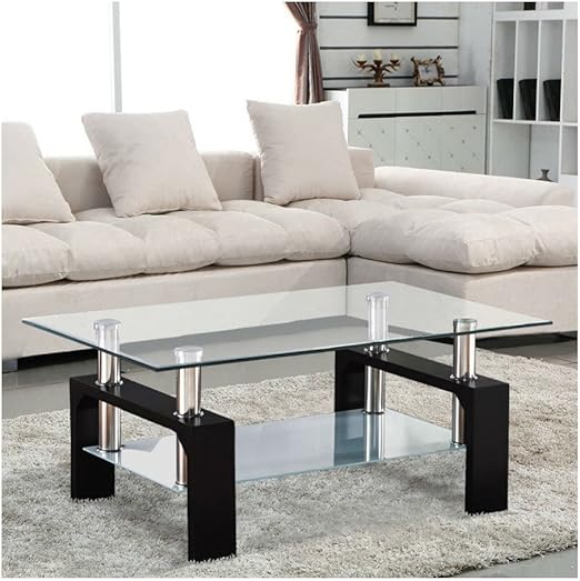 Amazon Com Modern Rectangular Black Glass Coffee Table Chrome