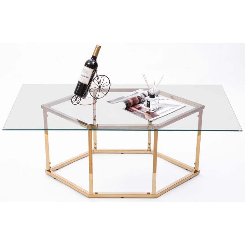 Everly Quinn Rectangular Glass Top Hexagon Gold Stainless Steel