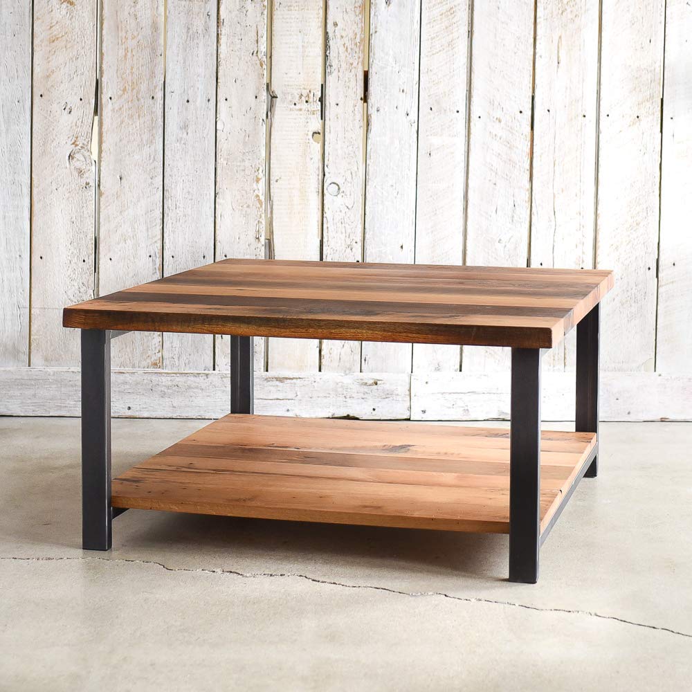Amazon Com Square Reclaimed Wood Coffee Table With Lower Shelf