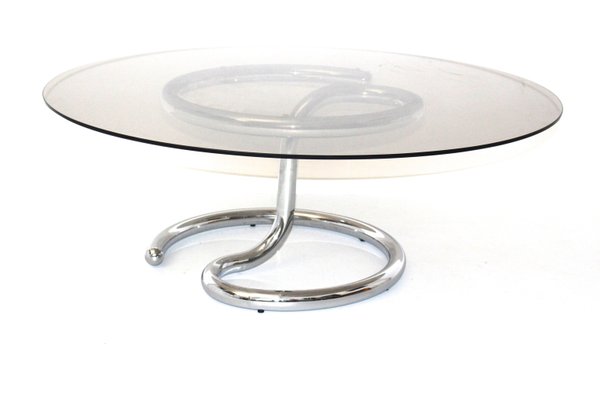 Vintage Curved Chromed Glass Coffee Table For Sale At Pamono