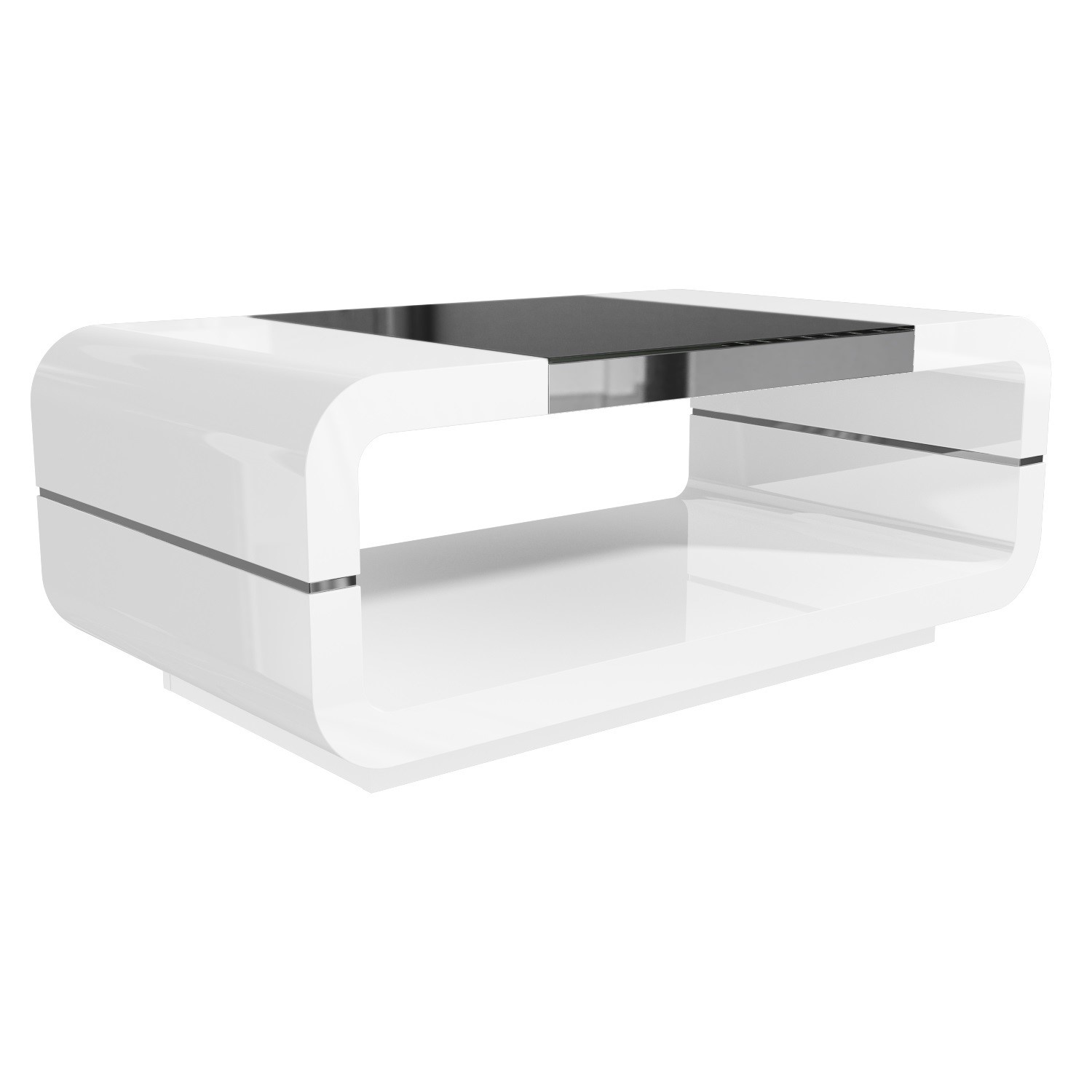 Gloss White Curved Coffee Table With Black Glass Top Tiffany