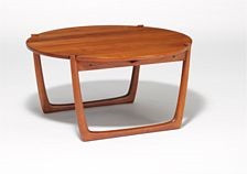 Circular Coffee Table Of Solid Teak Frame With Runner Legs By