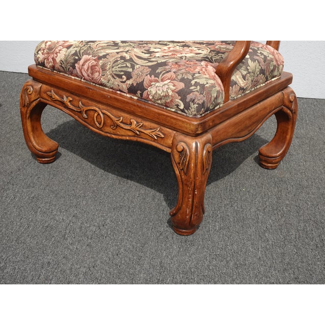 Pair Oriental Chinese Chinoiserie Oak Horseshoe Accent Chairs By