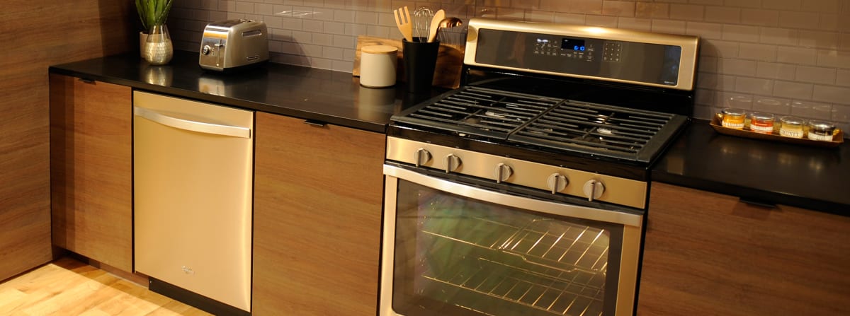Whirlpool kitchen appliances help you through every step in your meal. Choose from stainless kitchen appliance packages as you remodel the most frequented room in the house or find the replacement refrigerator dishwasher range or microwave you need so you dont miss a step. Whirlpool sunset bronze kitchen appliances.