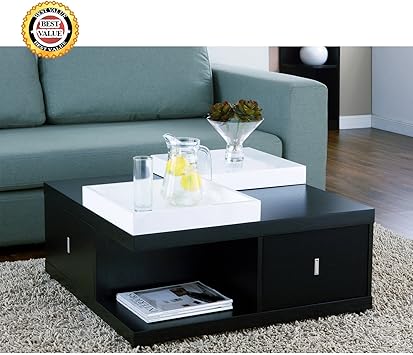 Black Square Coffee Table Rotating Contemporary Modern Living Room