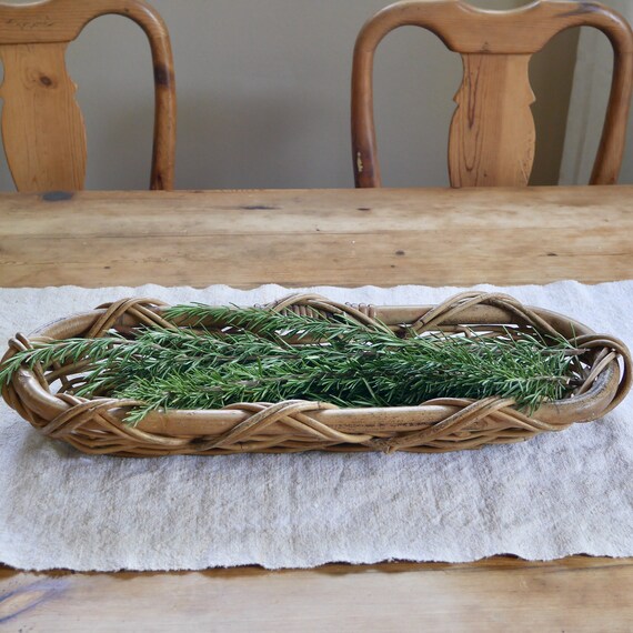 Vintage Flat Wicker Basket Tray Woven Rattan Flat Oval Etsy