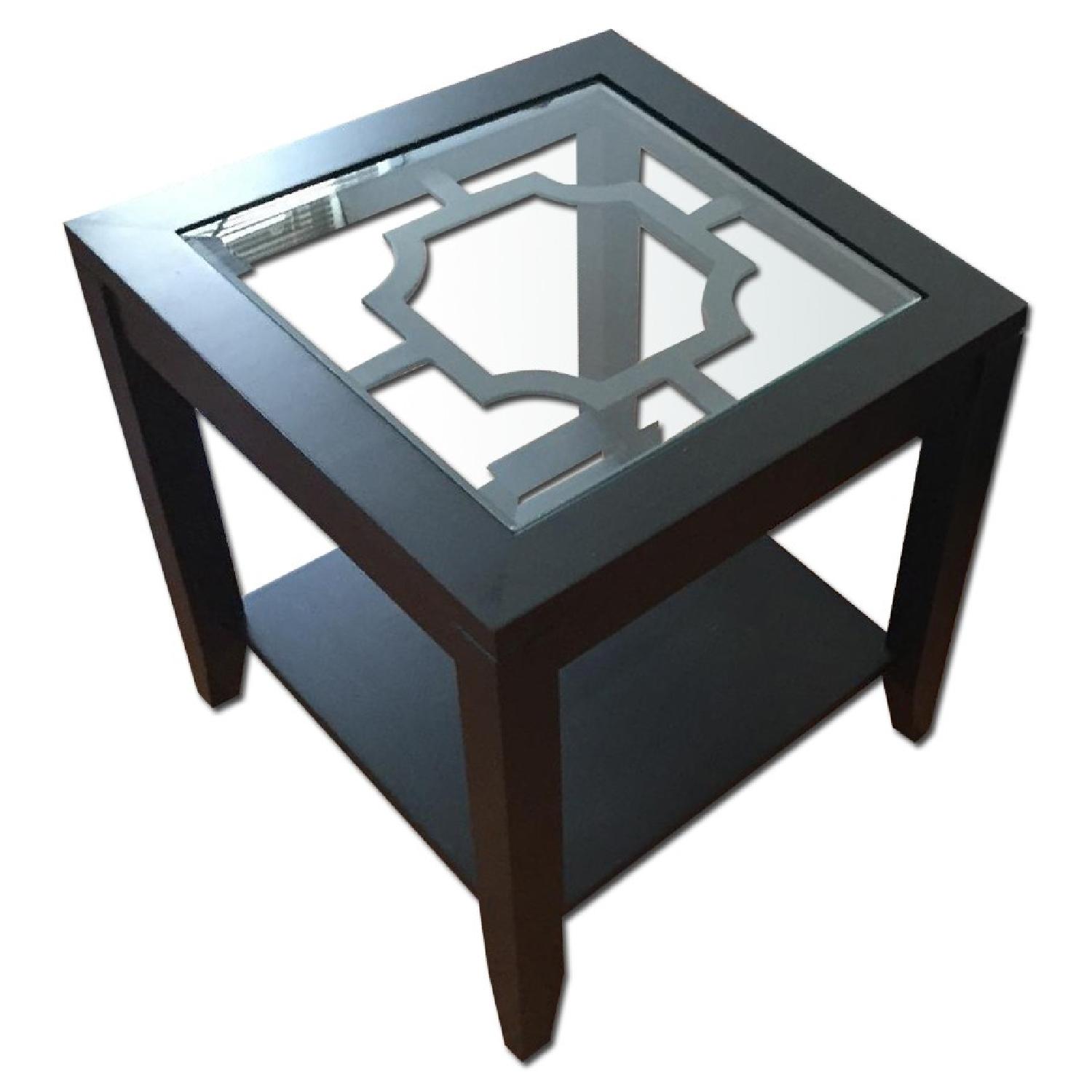 Shelby Black Wood Glass Top Coffee Table End Table W Quatrefoil
