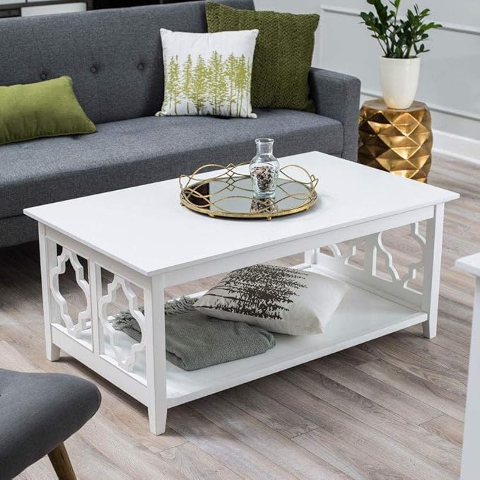Amazon Com Starsun Depot White Quatrefoil Coffee Table With Solid
