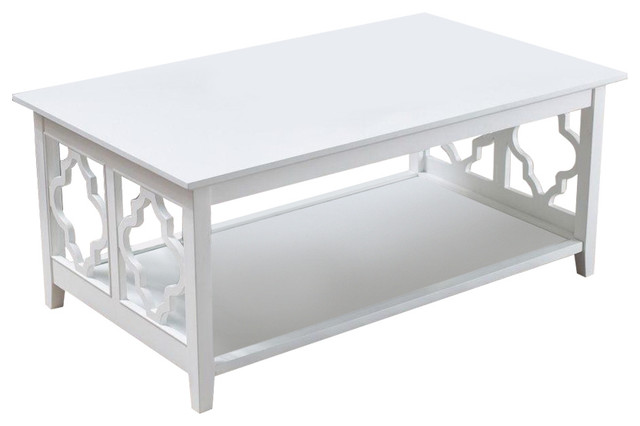White Quatrefoil Coffee Table With Solid Birch Wood Frame