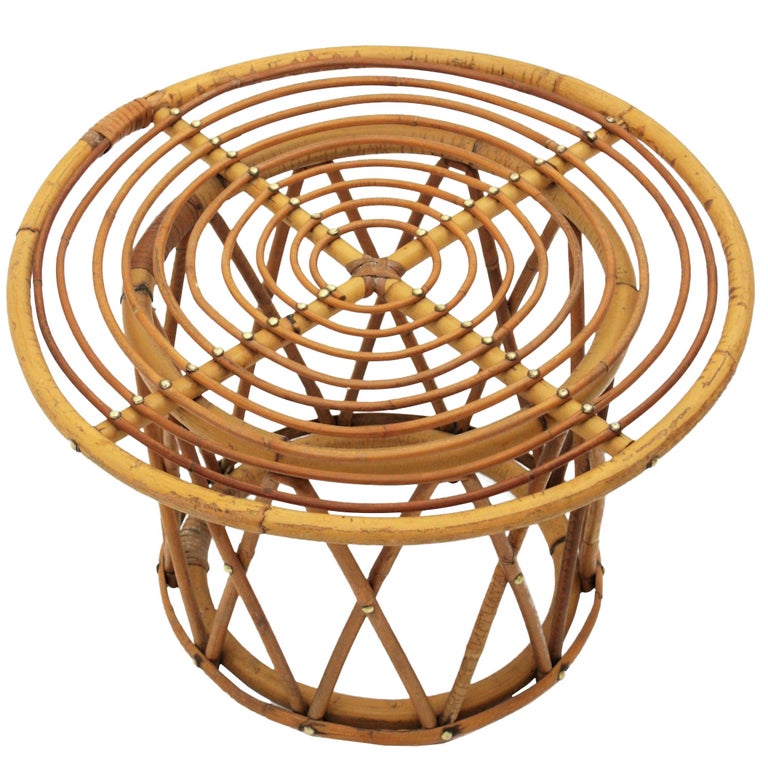 Franco Albini Style Bamboo And Rattan Coffee Table Side Table