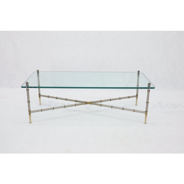 Rectangle Glass Top Chrome And Brass Faux Bamboo Coffee Table