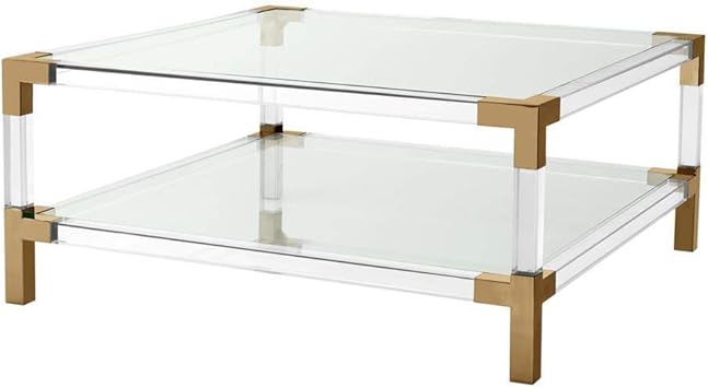 Buy Clear Glass Square Coffee Table With Brass Base At Fusion Living
