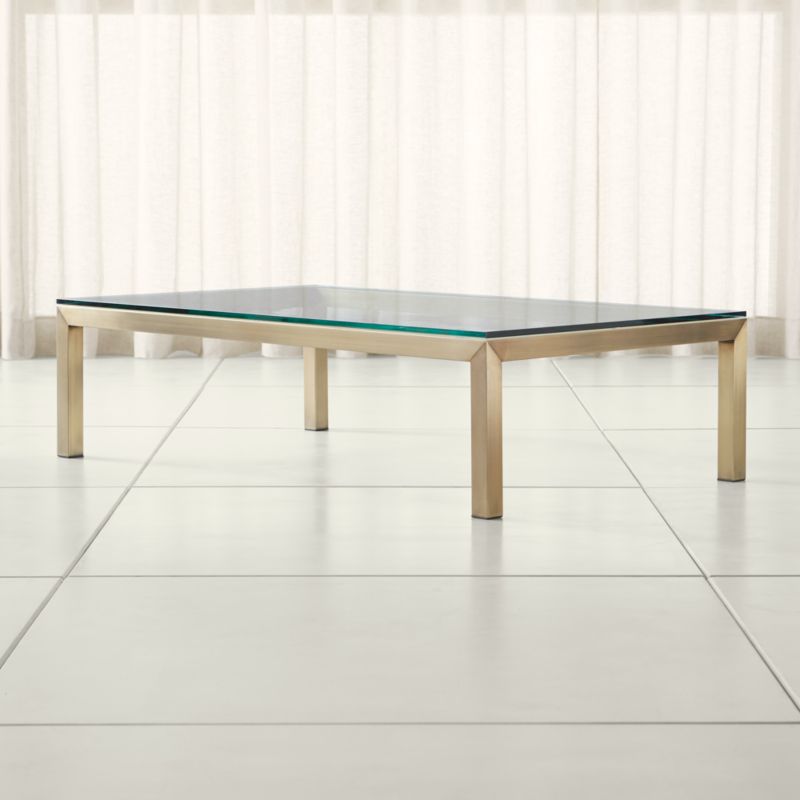 Parsons Clear Glass Top Brass Base 60x36 Large Rectangular Coffee
