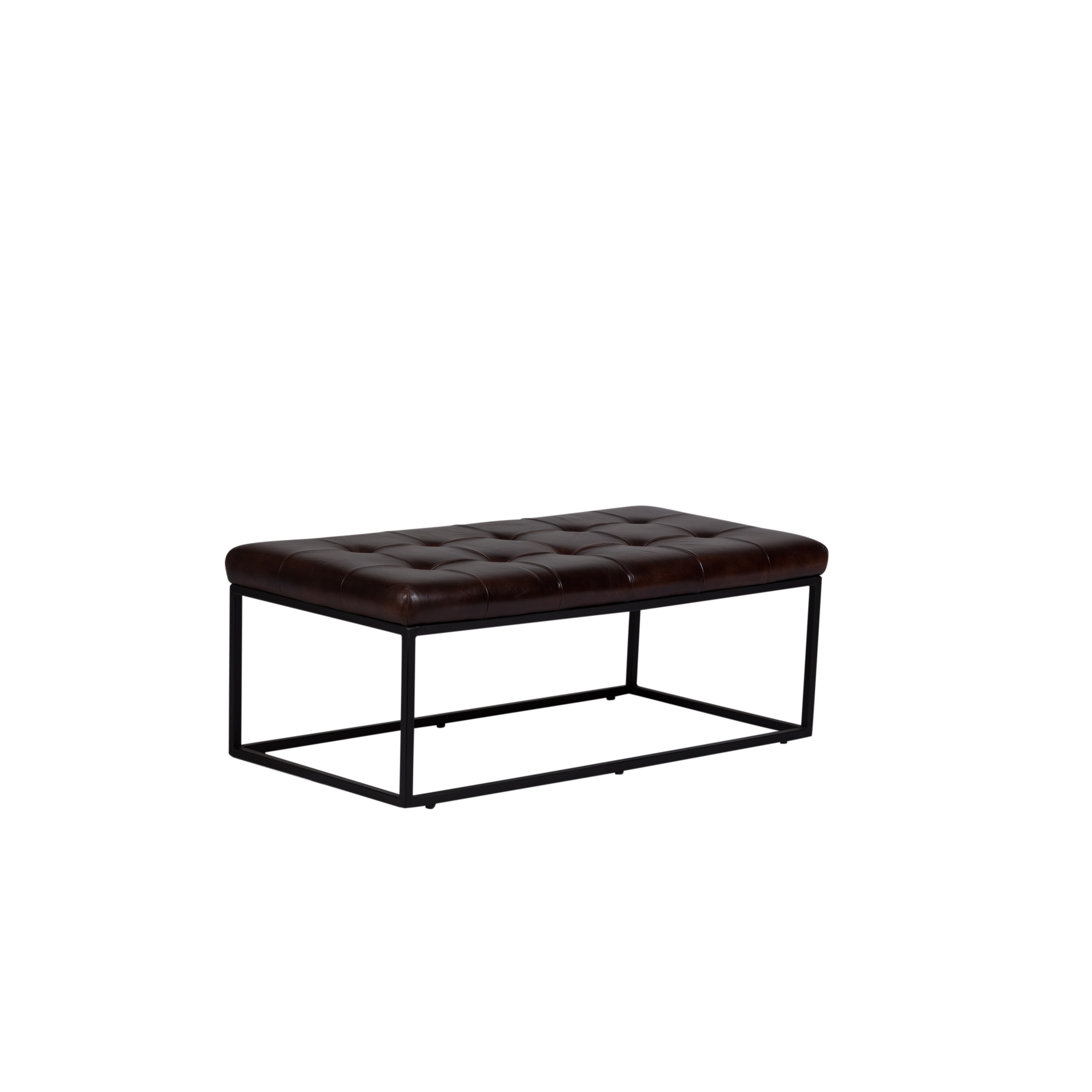 Oxford Tufted Black Leather Ottoman Coffee Table Zin Home