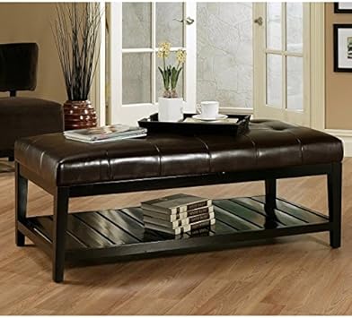Amazon Com Coffee Tables Bistro Leather Ottoman Rectangle Wood