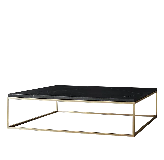 Modern Rectangular Steel Trim Black Marble Top Coffee Table