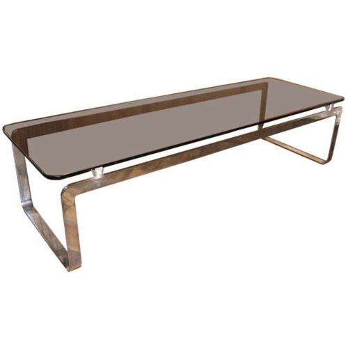 Vintage Large Rectangular Smoked Glass Coffee Table For Sale At Pamono