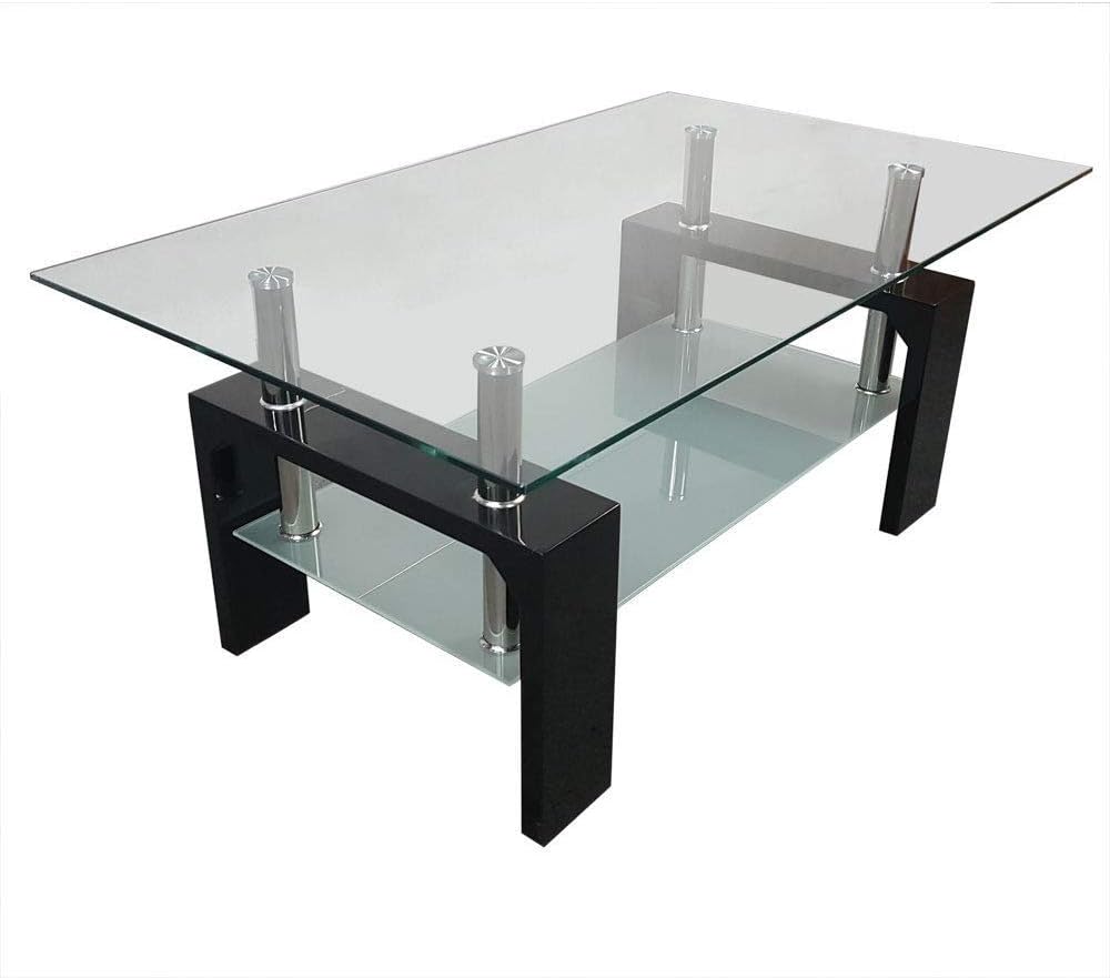 Black Home Discount Elise Rectangular Glass Coffee Table Living