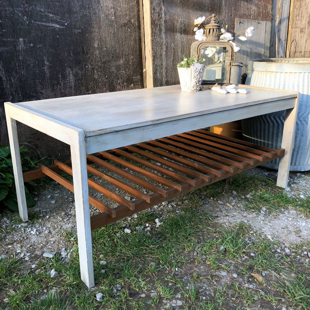 Retro Vintage Grey Painted Teak 1970s Coffee Table Tv Stand With