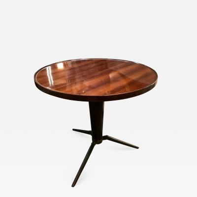 Midcentury Italian Round Coffee Side Table In Wood And Brass 1960s