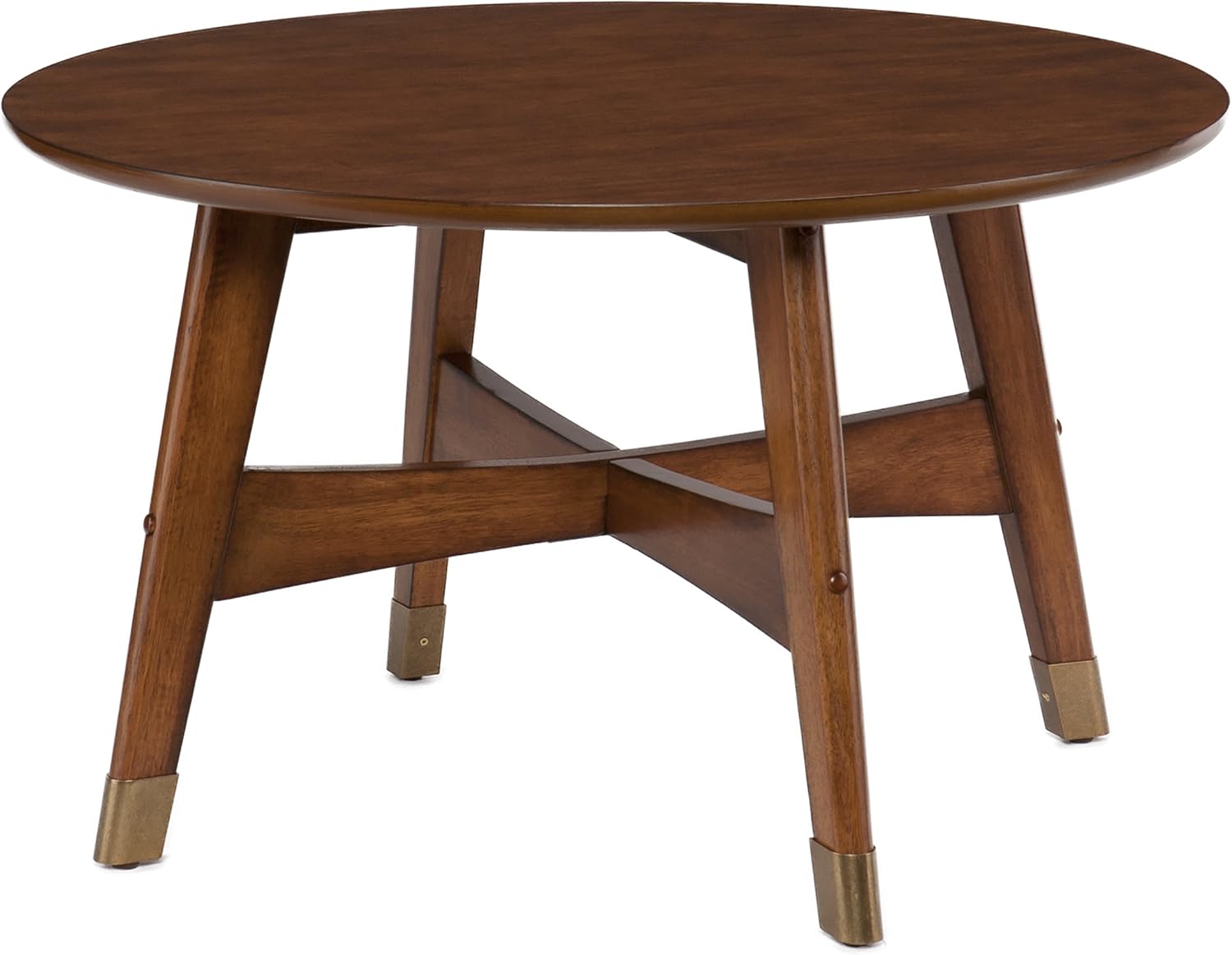Amazon Com Round Mid Century Table Brown Wood Frame W Brass