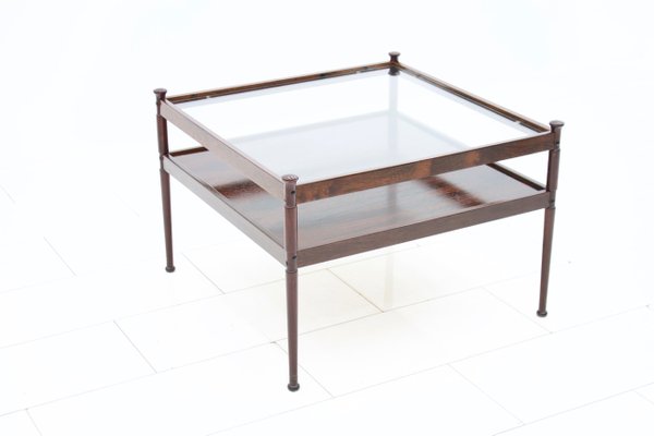 Mid Century Scandinavian Glass And Wood Coffee Table 1960s For