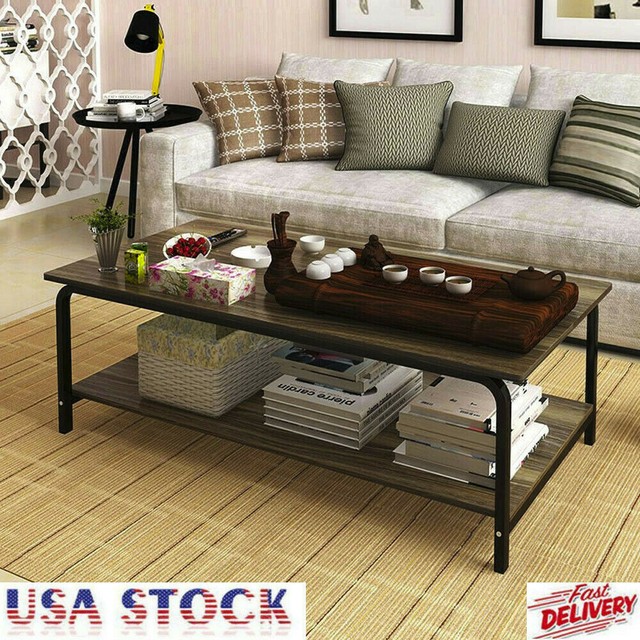 Homcom 2 Tier Simple Modern Coffee Table Storage Shelf Living Room