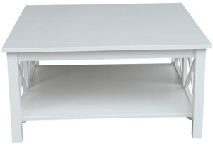 Pure White 36 Inch Square Coffee Table With Storage Open Shelf