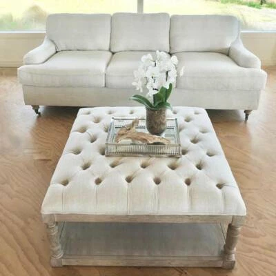 New Hamptons Tufted Ottoman Coffee Table Whitewash Oak