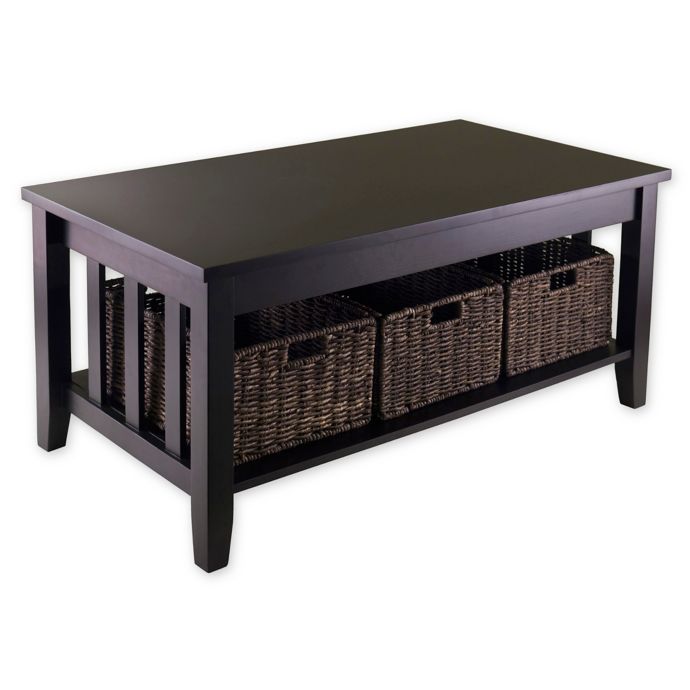 Winsome Trading Morris Coffee Table With Baskets In Dark Espresso