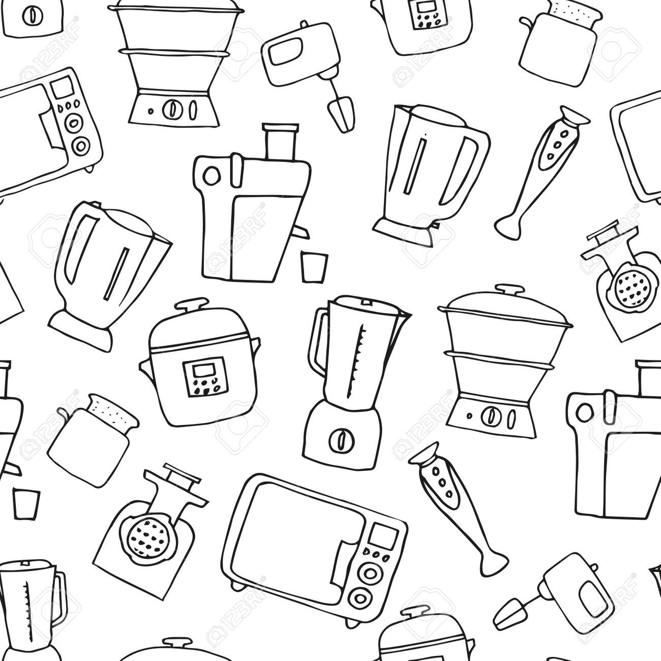 Hand Drawn Kitchen Appliances Stock Illustration Download Image