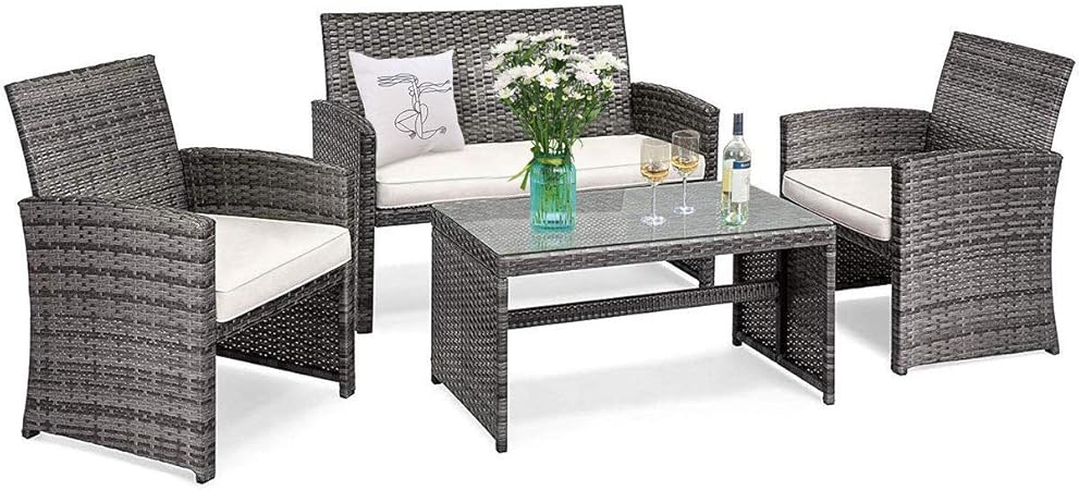 Amazon Com Tangkula 4 Pcs Wicker Patio Conversation Set Outdoor