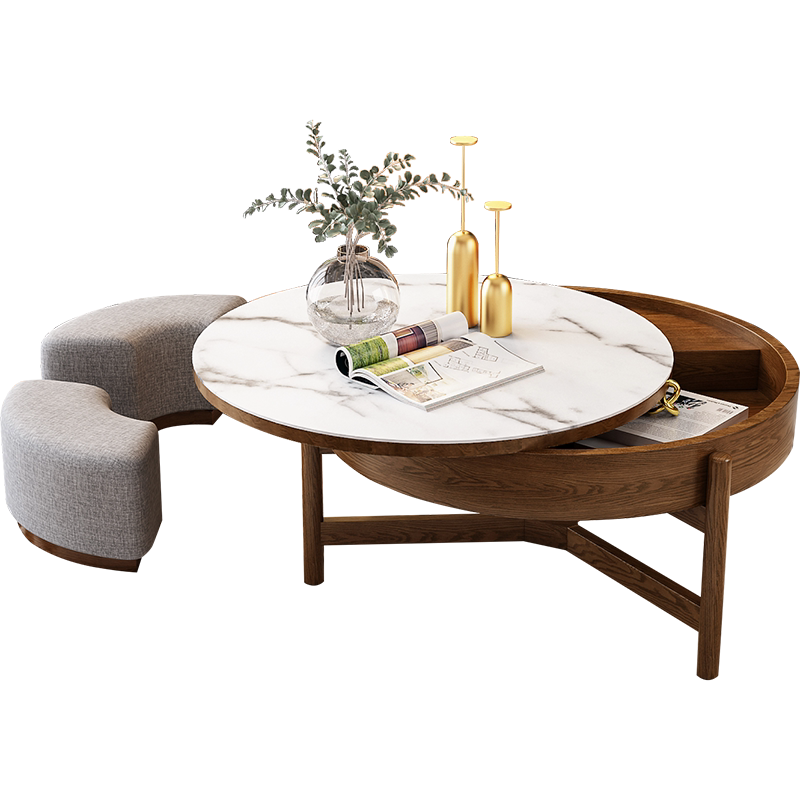 Modern Chic Round Wood Storage Coffee Table Natural Rotating