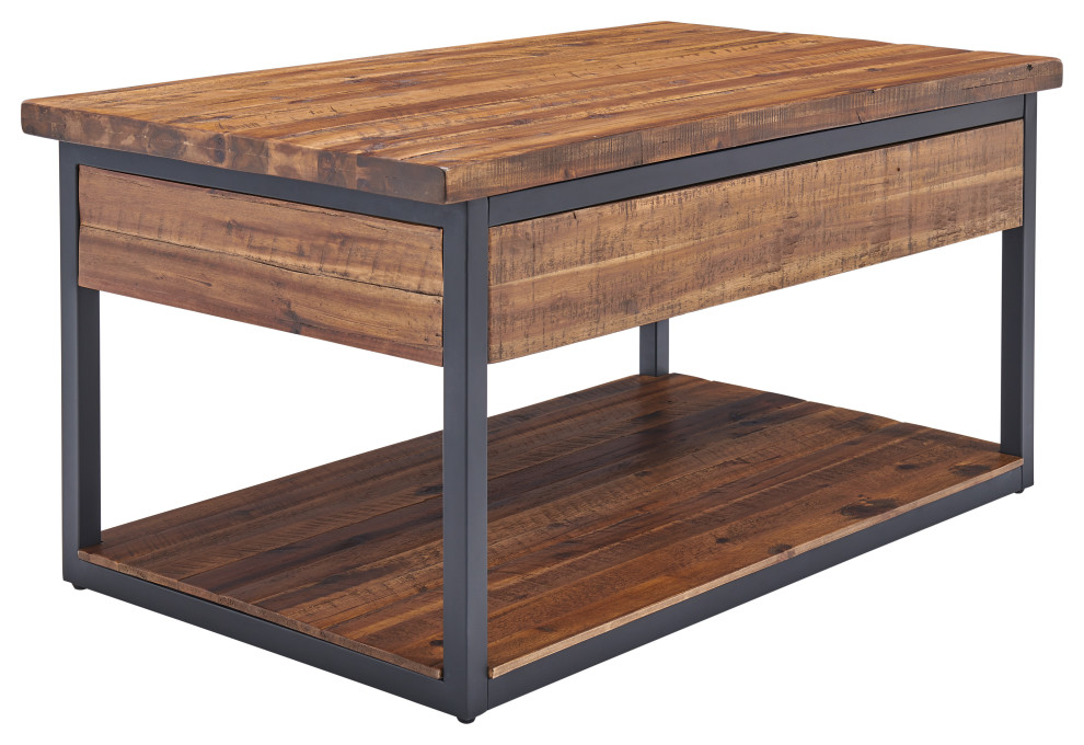 Claremont 42 Rustic Wood Coffee Table With Low Shelf Industrial