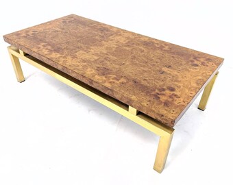 Mastercraft Burl Wood Brass Round Glass Top Coffee Table Ebay