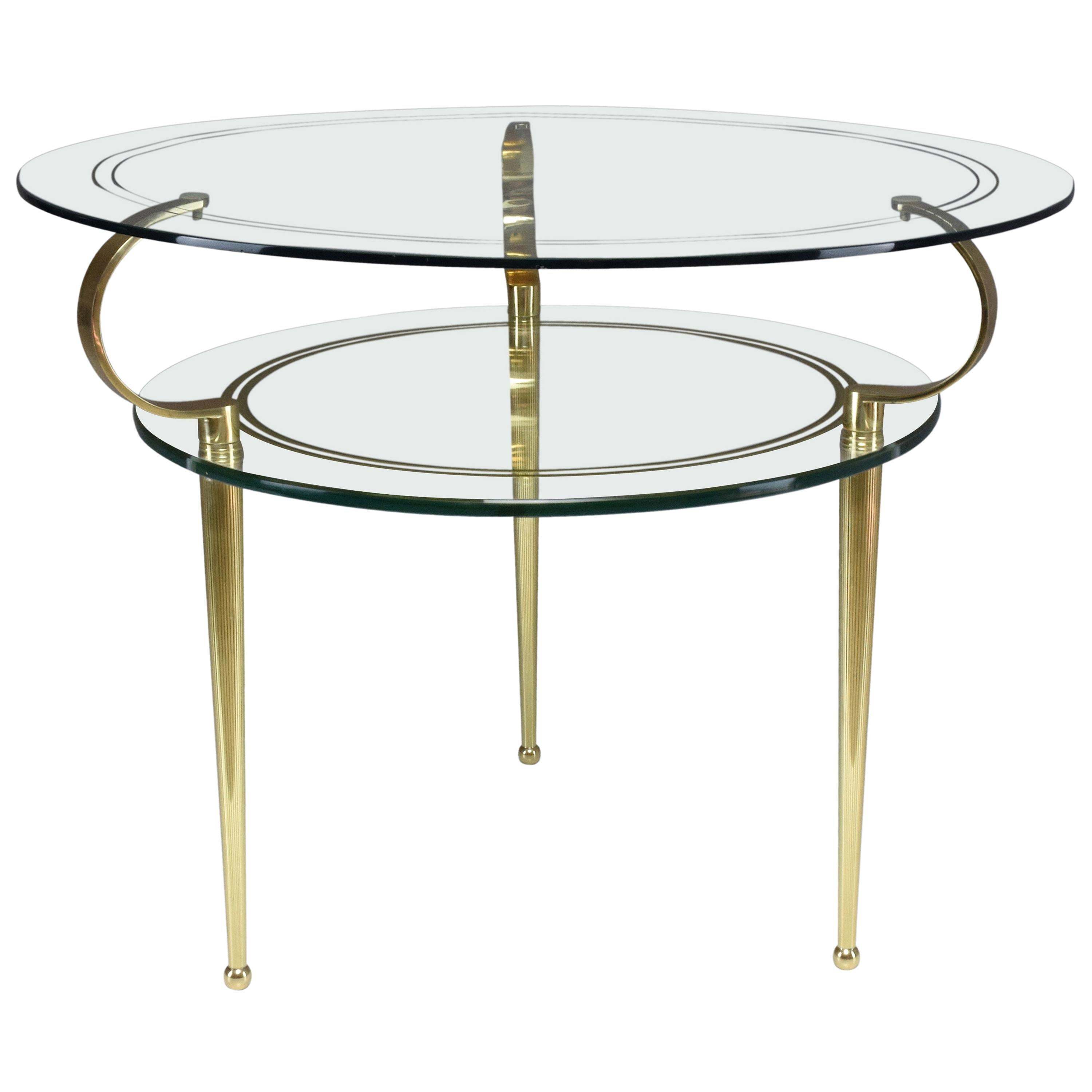 Italian Vintage Round Two Tier Glass Table By Cesare Lacca 1950s