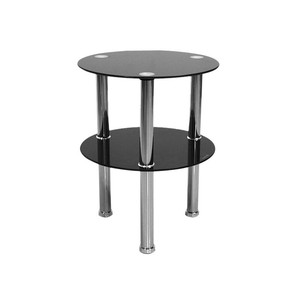 2 Tier Black Small Round Glass Sofa Side End Coffee Table Chrome