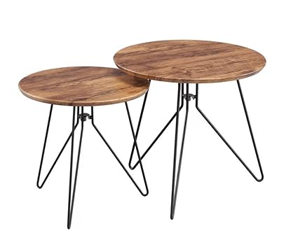 Industrial Side Tables Vintage Black Metal Legs Nest Of 2 Small